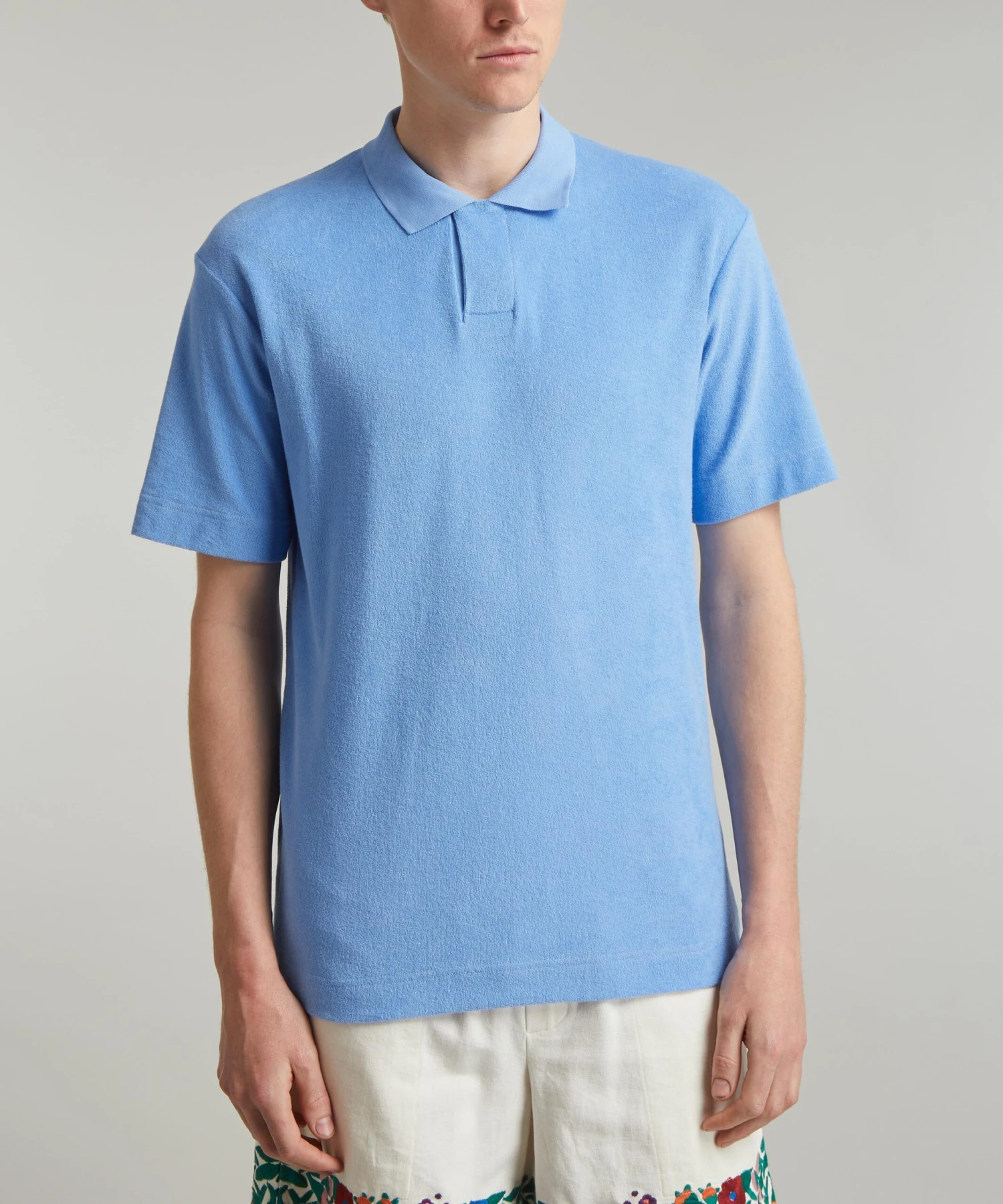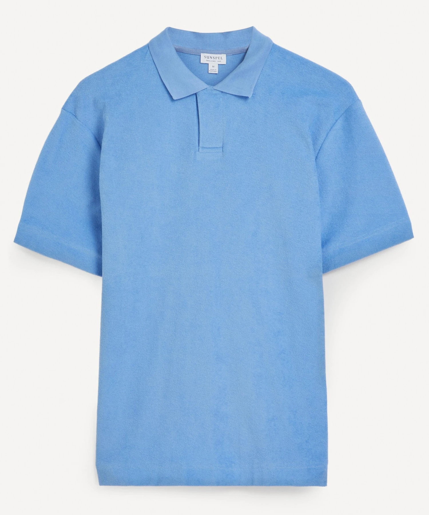 Refined to perfection since the 1900s, embolden your everyday casual edit with the iconic Sunspel Towelling Polo Shirt in the Pale Blue colourway. Crafted from a super-soft and lightweight cotton towelling fabric, it’s cut for a relaxed fit with short-sleeves and a ribbed polo collar featuring a concealed under-collar button.