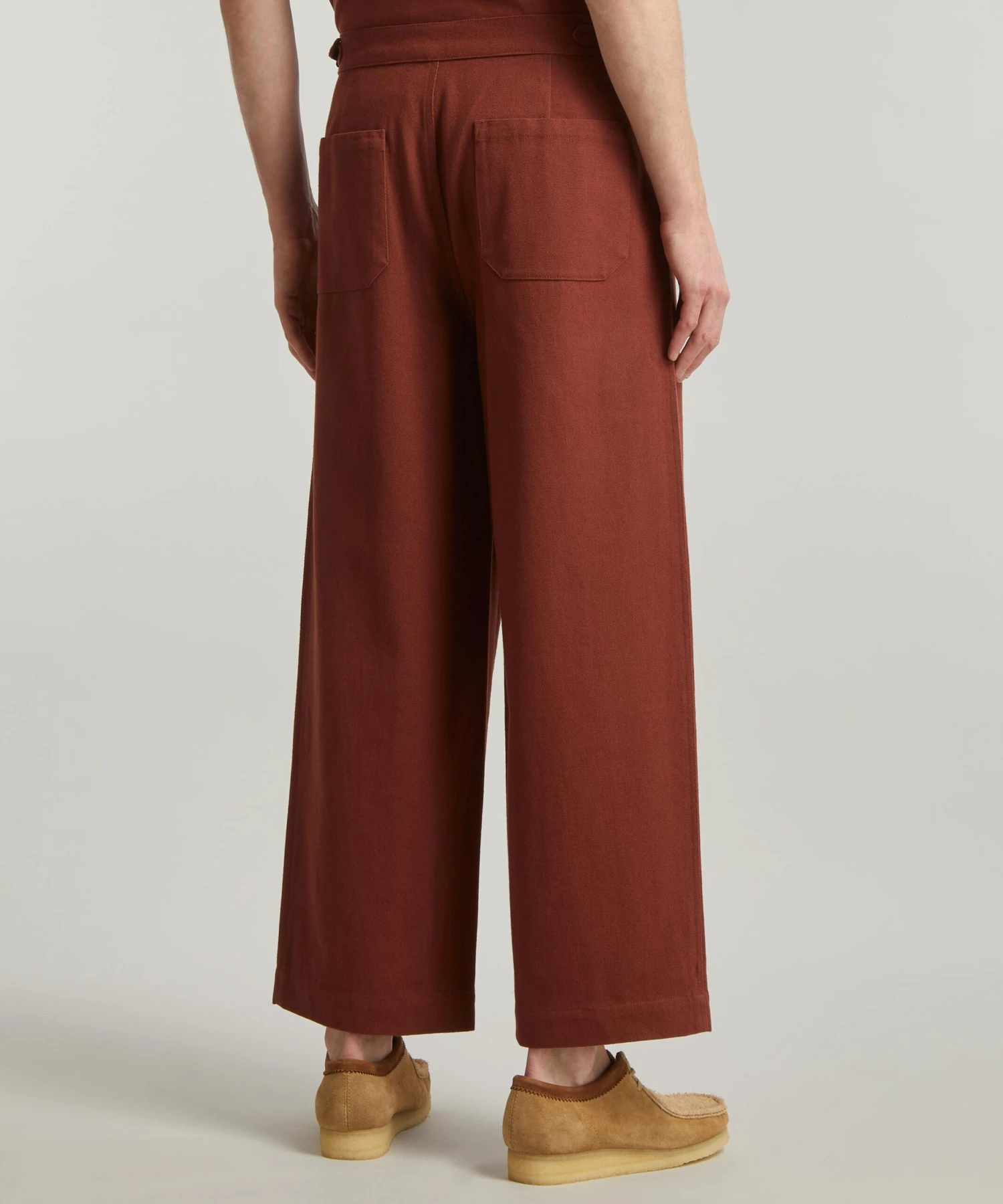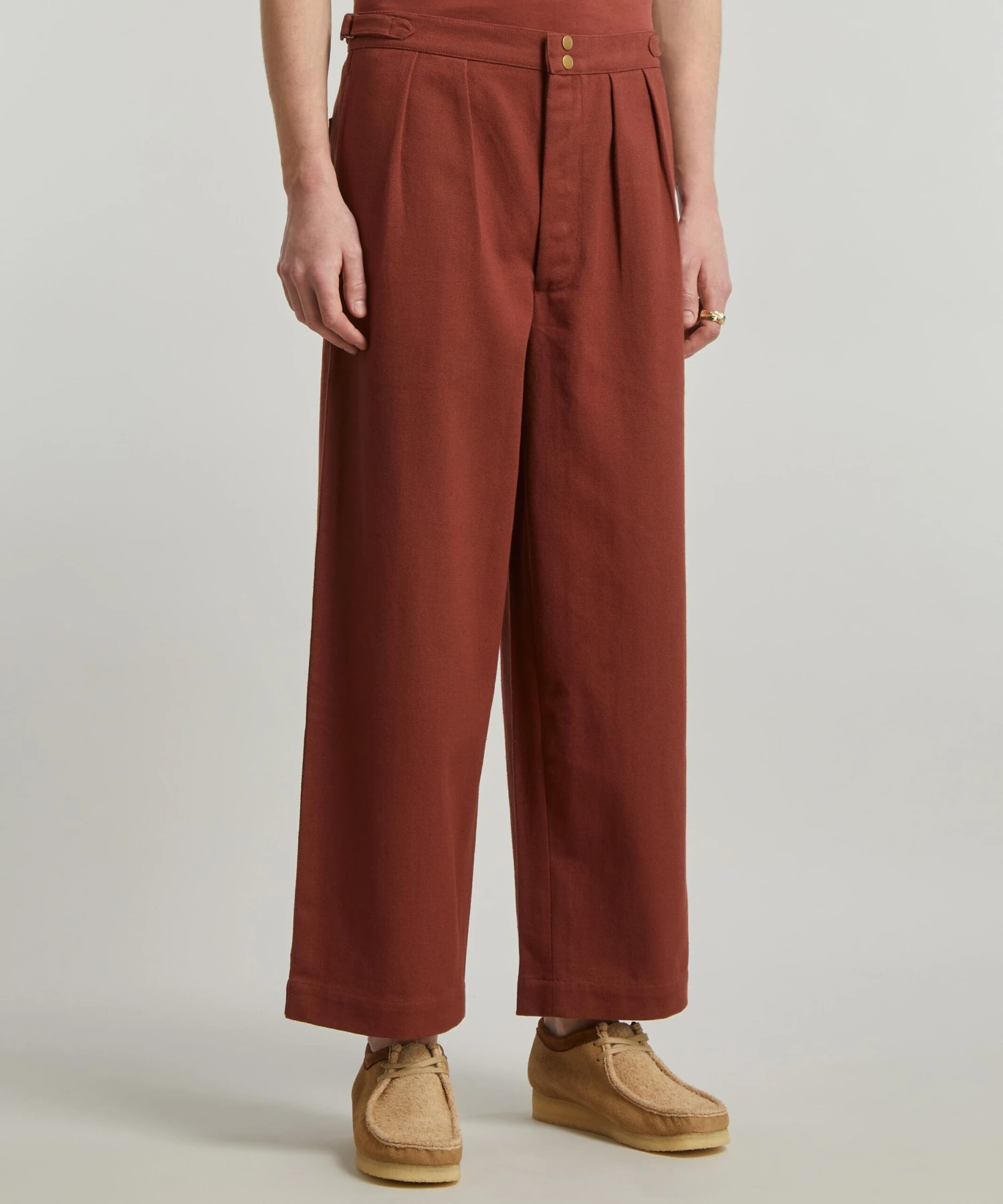 Cut to a relaxed fit with wide-legs from a lightweight cotton twill, these versatile trousers are characerised by their double snap closure, and are complete with pleat details through the front and two side pockets for a practical finish.