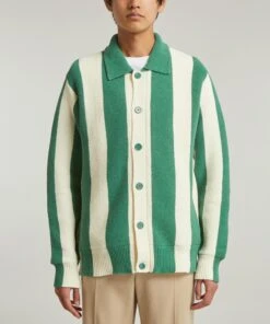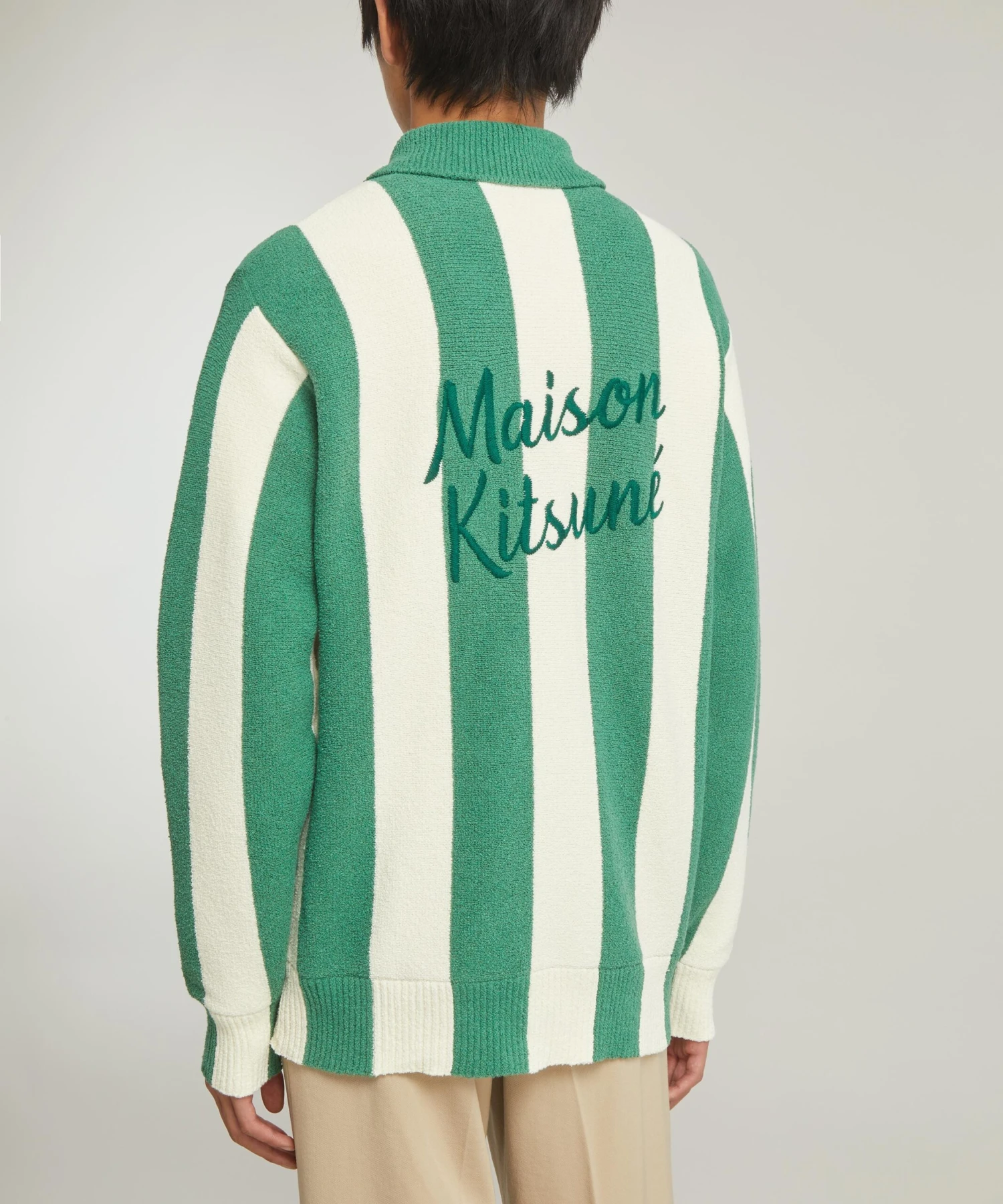 French fashion and record label Maison Kitsuné collaborates with Hotel Olympia to bring us the Poolside Stripes Polo cardigan – perfect for the pool or paired with jeans. Crafted from a tactile, towel-like terrycloth fabric for a relaxed fit with a ribbed polo collar and tonal buttons, its back is embroidered with ‘Maison Kitsuné’ in cursive script for a retro finish.