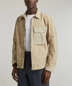 Cut from a lightweight nylon fabric, this utilitarian design offers ultimate functionality and style with its classic collar, front zip fastening and large flap-pocket at the chest.